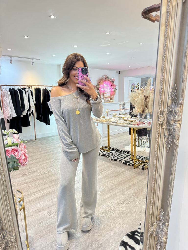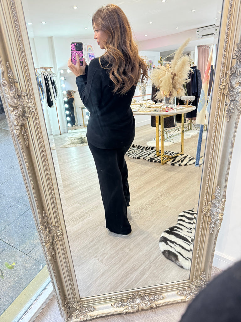Soft knit co ord with jumper & wise leg trousers