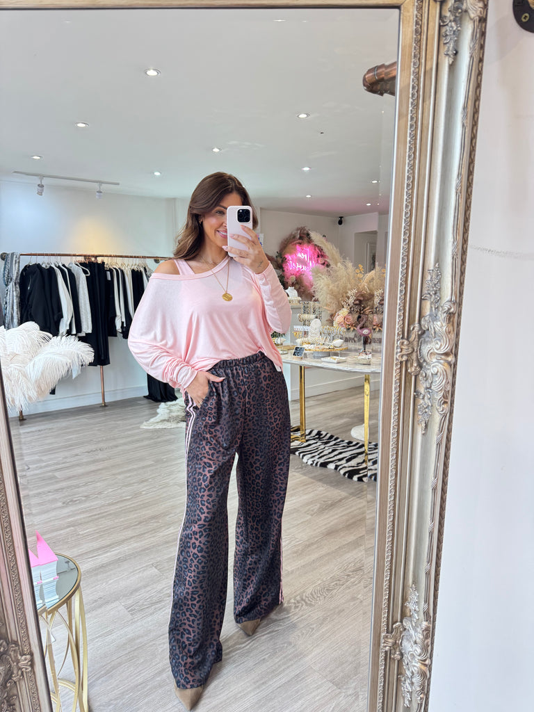 Loose fit leopard print stripe side trousers with pockets