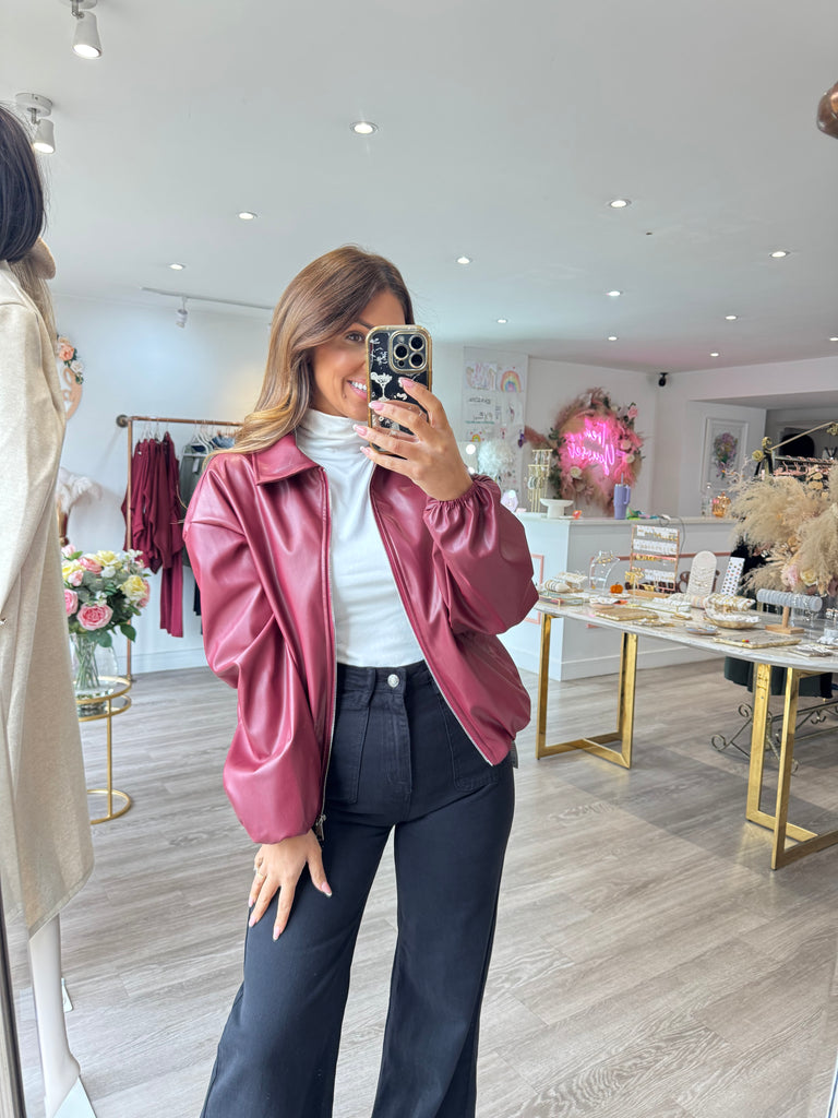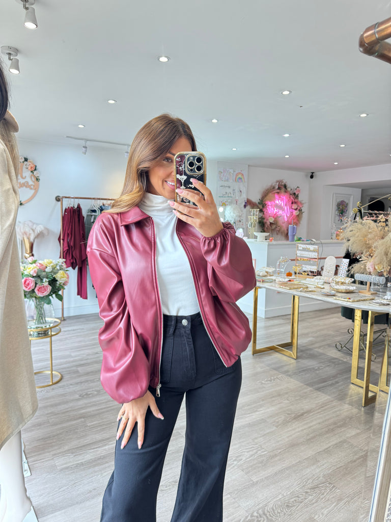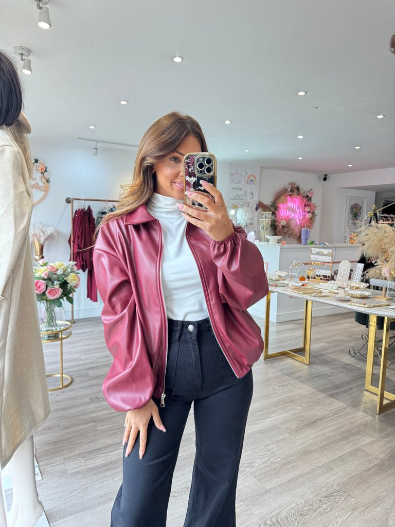 Pu zip fastening jacket with elasticated cuffs & bottom