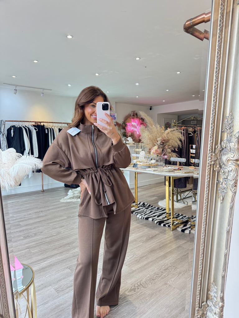 Zip through drawstring waist top with straight leg matching trousers